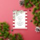 Esta elegante invitación a Navidades de personalizable es perfecta para fiestas y funciones corporativas. La moderna invitación de doble cara presenta un diseño de color bonito acuático y berry en un fondo de rayas rojas con verdaderos adornos de Relieve metalizado dorado. La personalización del guión se establece en el Relieve metalizado de oro estampado. Para ver más de VG Invita a grandes diseños visite www.zazzle.com/vginvites Victoria es una exitosa diseñadora de invitaciones en Júpiter Florida, cerca de West Palm Beach.