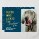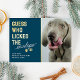 Craft the perfect witty greeting this holiday season with our humorous pet gold foil Christmas cards! Set against a stylish blue backdrop, each card boasts a color-popping photo of your furry friend, two cute paw prints, and the hilarious one-liner, 'Guess who licked the envelope'. Make them chuckle with this uniquely personal touch!