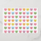 Girly lindo divertido personalizado conversación dulces corazones patrón Relieve metalizado tarjeta de vacaciones. Texto de personalizable completo. Así que puedes personalizar el mensaje dentro de cada corazón y hacer que cada corazón/mensaje sea único. 16 corazones que conforman el patrón. Colores variados. 6 corazones rosados, 2 corazones naranjas, 2 corazones azules, 2 corazones verdes, 2 corazones morados, 2 corazones amarillos. Fondo de color modificable en blanco. Estas tarjetas de Relieve metalizado son excelentes para sus novias y amigos para el Día del El día de San Valentín / Galentine.