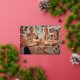 Inspiradora felicitación navideña de "Gloria a Dios" con una foto que presenta escritura de caligrafía de papel de aluminio real y un borde frondoso junto con su nombre y el año actual. La parte trasera de esta hermosa tarjeta navideña es una impresión botánica marfil apagada.