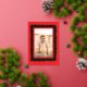 Tarjeta Festiva Con Relieve Metalizado gold bold modern red retro photo frame