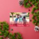 Tarjeta Festiva Con Relieve Metalizado GOLD Happy Holidays Red Gradient Navidad Photo