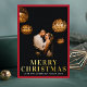 Tarjeta Festiva Con Relieve Metalizado Gold Merry Christmas Elegant Red Frame Photo