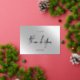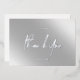 Tarjetas de agradecimiento boda, tarjetas de texto con caligrafía moderna elegante en Relieve metalizado metálico plateado real sobre Relieve metalizado de imitación metálica gris plateado. Diseño de plantillas simple y sofisticado sin foto. El Relieve metalizado de lujo real está hecho en Italia e impreso en EE.UU., y está disponible en una elegante variante de color oro rosa, oro y gris plateado.