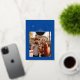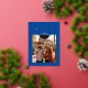Tarjeta fotográfica con una gran alegría prensada con lámina metálica en una fuente interesante y moderna. Divertida tarjeta fotográfica para enviar durante las fiestas de invierno.