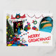Tarjeta Festiva Con Relieve Metalizado Grinch Clásico | Grinch en Chimenea