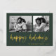 Esta sencilla tarjeta fotográfica clásica de vacaciones en familia verde presenta una tipografía moderna e informal de Relieve metalizado dorado que dice "vacaciones felices", con una cuadrícula de fotos en la parte delantera para un diseño vacacional elegante, moderno y minimalista.