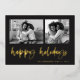 Esta sencilla tarjeta de fotos clásica de vacaciones de la familia negra de carbón vegetal presenta una tipografía moderna e informal de escritura de Relieve metalizado dorado que dice "vacaciones felices", con una cuadrícula de fotos en la parte delantera para un diseño elegante, moderno y minimalista de vacaciones.