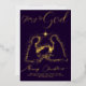 Elija esta elegante tarjeta de Navidad con la frase "Gloria a Dios" en guion moderno con un hermoso diseño navideño: el Pesebre, el niño Jesús, María y José rodeados de una luz mágica con foil dorado. En el reverso, tiene espacio para subir su logotipo/foto e información de su negocio/iglesia/mensaje corto, o simplemente subir una de sus fotos familiares encima.