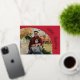 Curvas de Feliz Navidad en lámina de oro real rodean tu foto favorita en un chic guión en la parte frontal de estas tarjetas de felicitación de Navidad rojas. Tu mensaje personal y nombres están en la parte posterior. Asegúrate de verificar tu pedido antes de agregarlo al carrito, ya que lo que ves en la pantalla es lo que se imprimirá. El Servicio de Diseño en Vivo puede ayudarte con el diseño de tu tarjeta si es necesario.