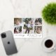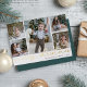 Comparte saludos de vacaciones con estas tarjetas de fotos navideñas de moda con cinco fotos favoritas en un diseño de collage (4 cuadrados y un retrato/vertical). "Feliz Navidad" aparece en el fondo en una tipografía con letras de Relieve metalizado dorado. Personalice su nombre y el año siguiente.