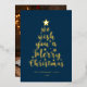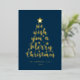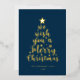 Tarjeta Festiva Con Relieve Metalizado Guión mínimo Navy Blue Merry Christmas