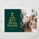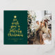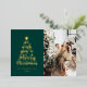 Guión mínimo Una foto horizontal Morera verde profundo Relieve metalizado navideño tarjeta de vacaciones