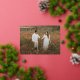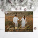 Happy Hanukkah in flowy letters with hanukkiah in the center printed in foil over full bleed photo; also available in flat printing