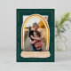 Único, moderno y mágico, moderno Navidad de nieve del mundo foto tarjeta de vacaciones para enviar a su familia y amigos esta temporada de vacaciones. El diseño presenta un marco fotográfico único con una banda de arco iris moderna con un marco dorado de rayas de Relieve metalizado en forma de globo. "Happy Place" se muestra en un elegante guión de Relieve metalizado dorado dentro de la base del globo de nieve. Un sencillo marco moderno de Relieve metalizado dorado crea secciones para mostrar el año, el saludo de vacaciones y la firma familiar. Sencillas estrellas de Relieve metalizado dorado y caída de la nieve superponen la foto para añadir un brillo y un aspecto mágico. El reverso presenta un diseño moderno de rayas doradas y multicolor. Todas las obras de arte y ilustraciones son obras de arte originales hechas a mano por Moodthology Papery.
