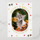 Meowy & Bright cat-themed Christmas card with text and stars printed in real gold foil, along with red hearts and brown paw prints. Personalize the cat Christmas card with a photo of your gorgeous cat or cats, add your family name and the year.