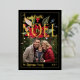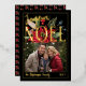 Sencilla foto familiar elegante de Relieve metalizado real "Joyeux Noël" (Feliz Navidad) diseño floral de poinsettia con diseño único rectangular de fotografía Navidades de vacaciones. En la parte posterior se muestra un patrón de repetición de puninsettia.