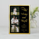 Este diseño de cuatro fotos está diseñado enteramente en Relieve metalizado dorado (o elegir oro plateado o rosa) y acentos con holly de Relieve metalizado dorado y bayas para emparejar con el saludo editable "Merry y Bright". Cuenta con tres fotos cuadradas más pequeñas en la parte delantera izquierda a abajo con una foto más grande en la parte posterior. Las fotos delanteras están decoradas con marcos sencillos de Relieve metalizado dorado. Diseño compuesto por Holiday Hearts Designs.