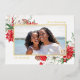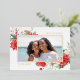 Holly Berries Poinsettias Pine Cone Photo Relieve metalizado Tarjeta de vacaciones