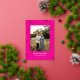Tarjeta Festiva Con Relieve Metalizado Hot Pink Simple Stars One Photo Happy New Year