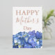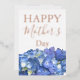Tarjeta Festiva Con Relieve Metalizado Hydrangeas Azules Florecen Día de la Madre