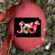 Una alegre tarjeta de felicitación navideña con letras ilustradas ALEGRÍA en rojo y verde sobre fondo negro. La parte trasera de la tarjeta tiene espacio para tu foto familiar favorita. Personaliza la tarjeta de felicitación con lámina dorada y comparte la alegría con tus amigos y familiares.