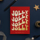 Tarjeta de Navidades Jolly Jolly Jolly: un diseño retro, con una tipografía de época ondulada en Relieve metalizado dorado y un fondo rojo clásico.