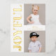 Elegante y moderna tarjeta de fotos de vacaciones con "Joyful" en letras de Relieve metalizado dorado a la izquierda de la tarjeta. Personalice la parte delantera de la tarjeta agregando dos de sus fotos favoritas y su nombre. La tarjeta de vacaciones de Relieve metalizado dorado se revierte a un patrón de moda dorada y dorada con un fondo negro. Diseñado para coordinar con nuestra colección de vacaciones Joyful Modern.