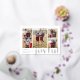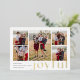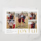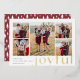 Share holiday greetings with these chic Christmas photo cards featuring five favorite photos in a collage layout (4 square and one portrait/vertical). "Joyful" appears along the bottom in modern gold foil lower case lettering, with your custom holiday greeting, family name, and the year aligned at the left. Cards reverse to a festive pine tree pattern.