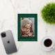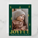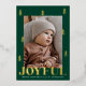 Celebre la temporada con esta célebre tarjeta de Navidades fotográficos que muestra su foto vertical enmarcada por pinos de Relieve metalizado dorado dibujados a mano sobre un rico fondo verde. La palabra "alegre" se muestra en negrita con letras de Relieve metalizado dorado, con el saludo de vacaciones personalizado y el nombre de la familia que se muestra a continuación. En la parte trasera hay un juego de fotos adicional con un fondo verde coordinado con puntos blancos sutiles, lo que hace de esta tarjeta de vacaciones de Relieve metalizado personalizado una forma elegante de compartir los cálidos deseos de los Navidades.