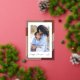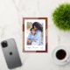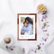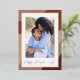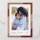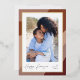 Moda y elegante diseño de tarjetas de vacaciones de Kwanzaa con una sola foto vertical u orientada a retratos sobre un fondo de rayas orgánicas en tonos de taupe, arena, caoba y cacao. "Happy Kwanzaa" aparece en escritura con letras a mano. Personalice con su nombre familiar el toque final perfecto para estas hermosas tarjetas fotográficas de vacaciones.