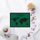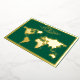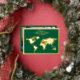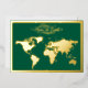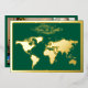 Esta es una clásica tarjeta de vacaciones verdes con un frente de Relieve metalizado dorado con un hermoso marco dorado que esboza un mapa del mundo de oro y "Paz en la Tierra" escrito con letras modernas de escritura. La parte posterior de la tarjeta muestra un collage de seis fotos: una gran imagen principal y cinco más pequeñas dispuestas a lo largo de los lados derecho e inferior.