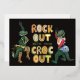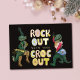 Tarjeta Festiva Con Relieve Metalizado Lagarto Divertido Chiste Pun Rock Out Con Tu Lagar