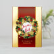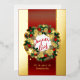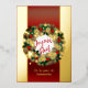 Esta elegante tarjeta de Navidades cuenta con una lujosa corona de Navidades sobre un fondo rojo con dos bandas verticales de oro reales. La corona está decorada con cañas de pino, azulejos blancos, rojos y azules, auténticas estrellas doradas y copos de nieve. Decoración muy alegre con el texto francés Joyeux Noël y el nombre del remitente al personalizar. (Aquí Samantha está traducido en francés pero puedes cambiarlo) Relieve metalizado de oro real. Feliz Navidad! ¡Joyeux Noël!