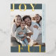 Tarjeta de Navidad con Foil de LOTTIE Azul. Personaliza la portada de la tarjeta con una foto, el nombre de tu familia y el año. Personaliza la parte trasera con un saludo navideño opcional o noticias familiares, y el nombre de tu familia.