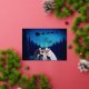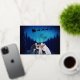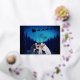 Bring sparkle and wonder to your holiday greetings with this luxury silver foil Christmas card. The front design features dazzling real silver foil stars and lettering, shining beautifully against a deep blue starry night sky. A silhouette-style photo cutout allows you to insert your own family picture, making it look as though you’re standing beneath Santa’s sleigh as it soars over a snowy forest backdrop, a truly magical holiday scene!