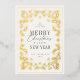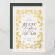 Elegante marco de filigrana botánica inspirado en vintage, tarjeta de Navidad de papel foil. Características, tipografía verde oscuro y respaldo de color verde a juego.