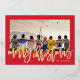 Tarjeta Festiva Con Relieve Metalizado Marco rojo y foto navideña dorada