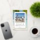 Tarjeta de vacaciones de hoja de oro real foto real Mares tropicales & Felicitaciones familia foto y Mares & Felicitaciones tarjeta de hoja de oro real con hermosa arena océano agua azul y foto de fondo de palmera. Tarjetas de fotos de vacaciones con tema de playa.