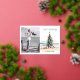 ¡Mares y saludos! Esta hermosa acuarela de un árbol de Navidad decorado se sienta en la playa con vistas al océano. 3 plantillas de fotos para agregar fotos, más plantillas de texto.