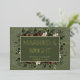 Introducing our enchanting winter wedding foil announcement card, where timeless elegance meets the beauty of the season. The rich pine green background, artfully distressed with soft white accents, sets a captivating tone for your special day. In the dark sage green text area, your wedding details will shine, surrounded by a delicate cream frame that adds a touch of refinement. Embrace the spirit of winter with a breathtaking frame of lush greenery, featuring holly adorned with rich red berries, mistletoe with its delicate white berries, and the timeless allure of green pine. This winter wonderland-inspired design captures the essence of the season and invites your guests to celebrate your love in a setting that exudes natural grace and festive charm. Created by Simply Farmhouse Press.