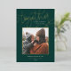 Una simple y sincera tarjeta fotográfica de vacaciones que pone tu foto cuadrada en un fondo verde del bosque con un mensaje dulce. "Juntos es nuestro lugar favorito para ser" aparece en el guión de Relieve metalizado dorado y en letras en bloques, con tu saludo de personalizado por vacaciones, nombre de familia y el año por debajo. Una elección simple y elegante con la impresión de acentos de Relieve metalizado dorado para sus tarjetas Navidades 2022.