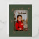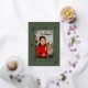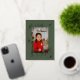 Celebrate the season with this beautifully hand-lettered Merry & Bright Holiday card featuring elegant script overlay on an evergreen backdrop. The front showcases your family photo framed with modern hand-lettering while the back includes an additional photo.