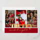 Tarjeta Festiva Con Relieve Metalizado Merry Bright Three Photo Red and gold