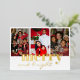 Tarjeta Festiva Con Relieve Metalizado Merry Bright Three Photo White y gold