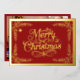 Esta es una tarjeta clásica de Navidades rojos que presenta un frente de Relieve metalizado dorado con un hermoso marco dorado que esboza una Feliz Navidad escrita con letras de escritura modernas. La parte posterior de la tarjeta muestra un collage de seis fotos: una gran imagen principal y cinco más pequeñas dispuestas a lo largo de los lados derecho e inferior.