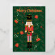 Tarjeta Festiva Con Relieve Metalizado Merry Christmas Nutcracker Green Foil Holiday Card
