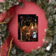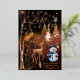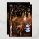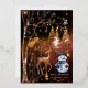 Winter Magic y Merry Christmas Holiday card. El frente es un verdadero Relieve metalizado en los árboles y el texto. Compruebe los intervalos de tiempo que proporciona Zazzle. El fondo oscuro con tonos dorados y el rojo quemado es mejor para el Relieve metalizado para brillar. Hay una historia con una niñita y un bebé, un cuervo y un zorro, y hermosos árboles frustrados. Puedes usar el Relieve metalizado de oro, pero lo mejor es el oro rosa. Actualiza con tu apellido y hay un deseo de vacaciones en la parte trasera de la tarjeta. Feliz Navidad! Todos los personajes fueron pintados con acuarela.