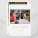 Merry Everything Calligraphy Personalizado Mensaje Tres tarjeta de vacaciones de Relieve metalizado dorado fotográfico