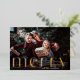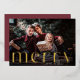 La elegante tarjeta de Navidad cuenta con una sola foto horizontal o apaisada con "Merry" superpuesto en letras doradas de gran tamaño que se extienden hasta el borde inferior de la tarjeta. Personalice con el nombre de su familia o nombres individuales y el año debajo en letras blancas modernas. Una opción simple y elegante para sus saludos de vacaciones de 2022.